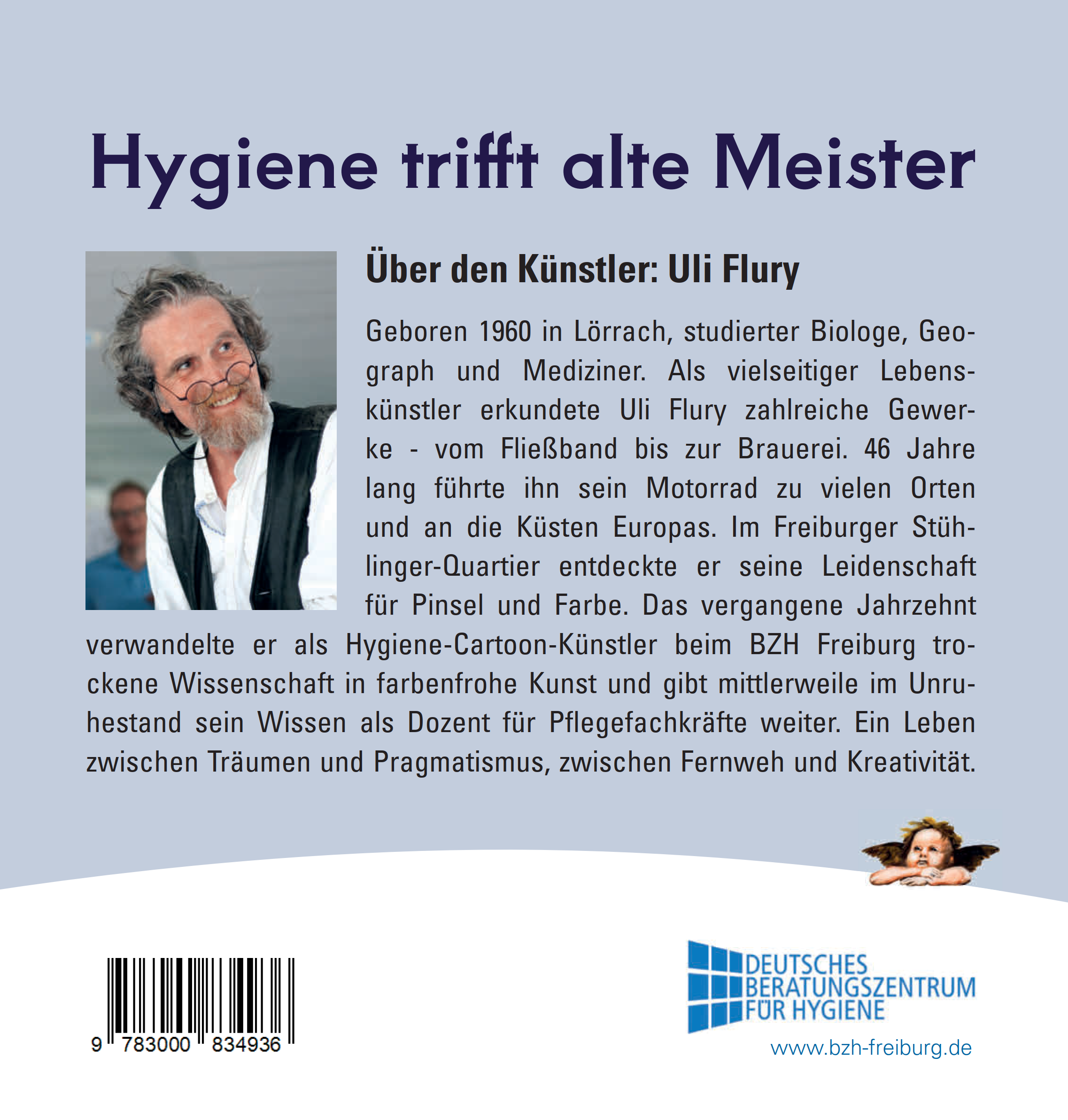 Seine vielfältigen Werke, die Sie auch in der virtuellen Dauerausstellung Hygiene trifft Kunst entdecken können, wurden nun in einer ersten Auflage als Buch unter dem Titel Hygiene trifft alte Meister veröffentlicht.