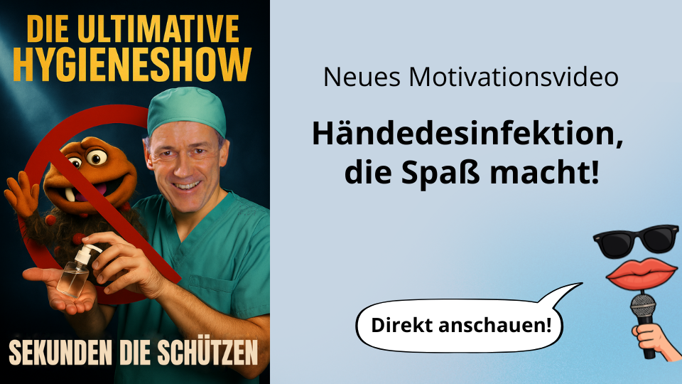 Looking for motivation for staff training? Hand disinfection is part of everyday life and is often done as an afterthought. But with Vinzenz the InfluenzA and Dr Mic, it's now a real eye-catcher!